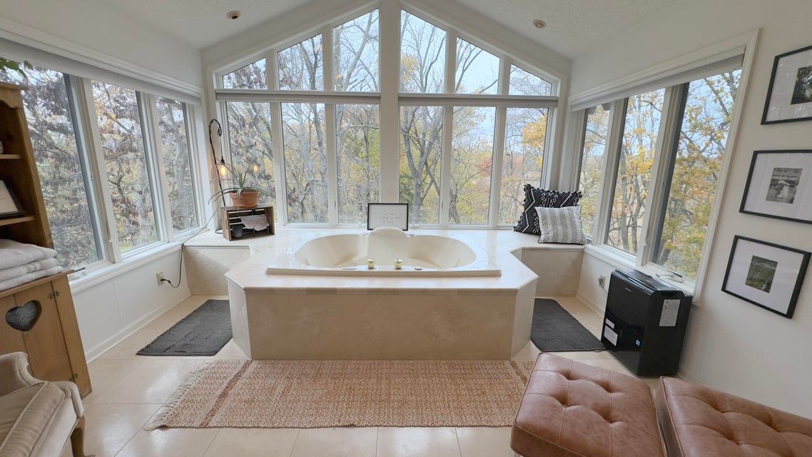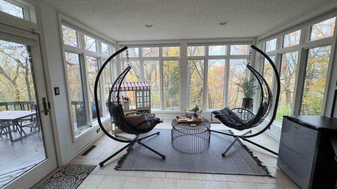 Discover this inviting 3-bedroom, 4-bathroom home (once featured in Better Home & Gardens!) tucked away in a peaceful, tree-lined neighborhood in Gilbert School District. Inside, you'll find warm and welcoming living spaces, including two fireplaces that create the perfect ambiance for cozy evenings. The bright sunroom offers year-round enjoyment of the natural surroundings, while the den provides a comfortable retreat for reading, work, or relaxation. The spacious basement offers plenty of potential; easily transform it into a fourth bedroom, home gym, or entertainment area to suit your needs. Step outside the walkout basement into a lovely yard with beautiful views, you can even find a trail leading down to the creek!